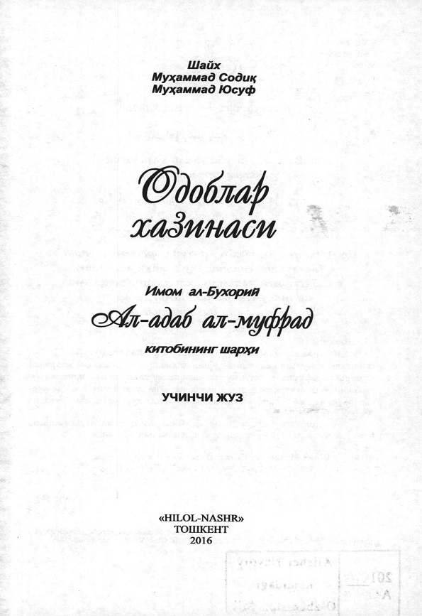 Одоблар хазинаси.Имом ал-Бухорий Ал-адаб ал-муфрат китобининг шархи, Учинчи жуз